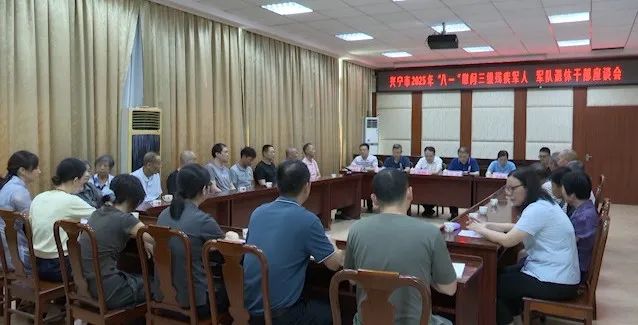 在八一建军节来临之际,我市在退役军人事务局召开“八一”慰问三级残疾军人、军队退休干部座谈会和“八一”驻兴部队群工干部座谈会。市政府副市长陈君溢等出席了座谈会。 座谈会上,与会人员听取了全市退役军人服务保障工作以及驻兴部队国防和军队建设等工作情况汇报。陈君溢亲切地与残疾军人和军队退休干部们交谈,详细询问他们的身体状况和生活情况,送上党和政府的关怀,并向他们致以节日问候和美好祝福。同时,要求相关部门要落实落细优抚政策,积极为他们办实事、解难事;要全力支持部队建设发展,用心用情做好服务保障工作,千方百计为部队排忧解难。 与会代表敞开心扉,踊跃发言,分享了转业回乡工作、生活的经历;他们纷纷表示,将继续保持和发扬军人吃苦耐劳、甘于奉献的优良作风,为兴宁经济高质量发展和社会和谐稳定作出应有的贡献。