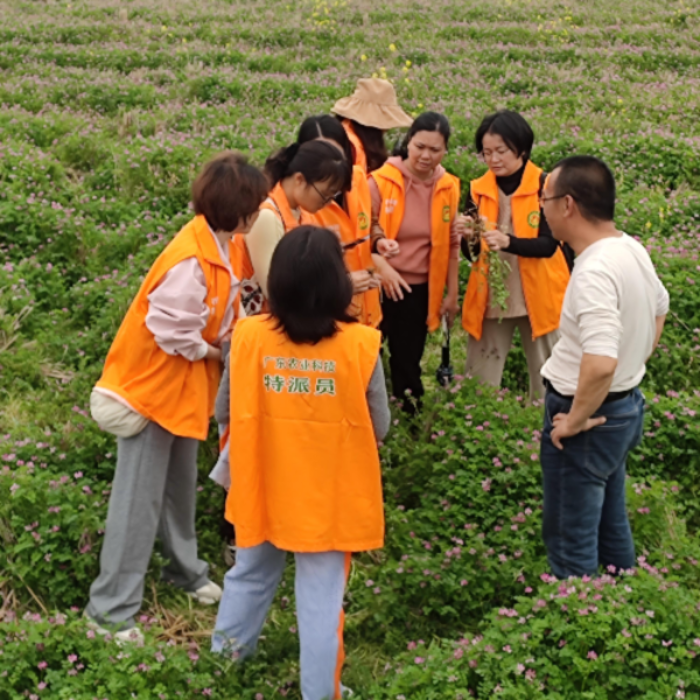 农业农村局组织农业科技特派员到紫云英示范种植地-大坪镇潭坑村广东省丝苗香米科技创新中心实验基地调研紫云英种植情况,为下阶段打造以“绿肥为媒”的乡村生态旅游农业提供实践样本,助力兴宁农业高质量发展。 紫云英是重要的绿肥作物,其根部寄生根瘤菌,能固定空气中的氮素,使空气中的氮素转化为土壤中的氮肥,提高土壤肥力。 通过调研,农业科技特派员直观地了解了紫云英根瘤菌寄生情况,认为要全面挖掘紫云英肥源、景源、饲源、食源、蜜源等多功能属性,发动各村紧跟农时开展紫云英绿肥种植,真正发挥好紫云英产业经济、生态、社会等综合效益,提升耕地质量,改善农业生态环境,助力农业高质量发展,助推我市“百县千镇万村高质量发展工程”。