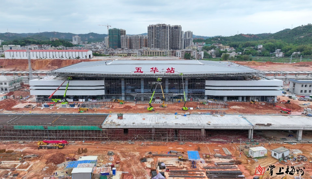 掌上梅州讯 目前,梅龙高铁新设兴宁南站、五华站站房建设进入到快速施工期。两个站房主体结构已完工,预计两座站房将于6月完工。 兴宁南站站房。 记者在兴宁南站、五华站看见,施工现场机器轰鸣声,焊接声、切割声、捶打声此起彼伏,作业车辆繁忙。两个站房主体建筑已经成型,一眼可见设计特色,站台主体已基本建成,站前广场已完成土地平整,五华站已悬挂站名铭牌。站房内部装修正在火热开展。 五华站站房。 记者从建设施工单位获悉,目前,兴宁南站主体结构、钢结构已全部完工,已全面进入装饰装修和机电安装阶段。站台铺装已完成98%,雨棚涂料和水电安装均完成92%;站房装饰已完成65%,水电消防安装完成82%,石材幕墙面板完成89%,玻璃幕墙面层完成65%,站房计划于6月份完工。站前广场部分也正在有序推进,预计6月底完成主体工程。五华站站房主体结构、钢结构金属屋面已完成,装饰装修、机电设备安装分别完成62%、80%,石材幕墙面板完成72%,玻璃幕墙面层完成75%,预计2024年6月份完工。站前广场配套设施已完成40%,正在按照6月底完成的目标全力推进。 兴宁南站站房正在进行内部装修。 五华站站房正在进行内部装修。 “在保证质量和安全的前提下,项目部认真做好施工策划和过程管控,安排充足人员和设备,加快施工进度,全力保证站房及配套设施如期交付使用。”建设单位相关负责人表示,当前,两个站房共有千名现场施工工人。 五华站站台。 据了解,梅龙高铁全长95.6公里,沿线设4个车站,两座既有车站为梅州西站、龙川西站,新设兴宁南站、五华站,预计今年9月达到开通运营条件。目前,路基、桥梁、隧道工程已全部完工,铺轨、四电、站房工程正有序进行。