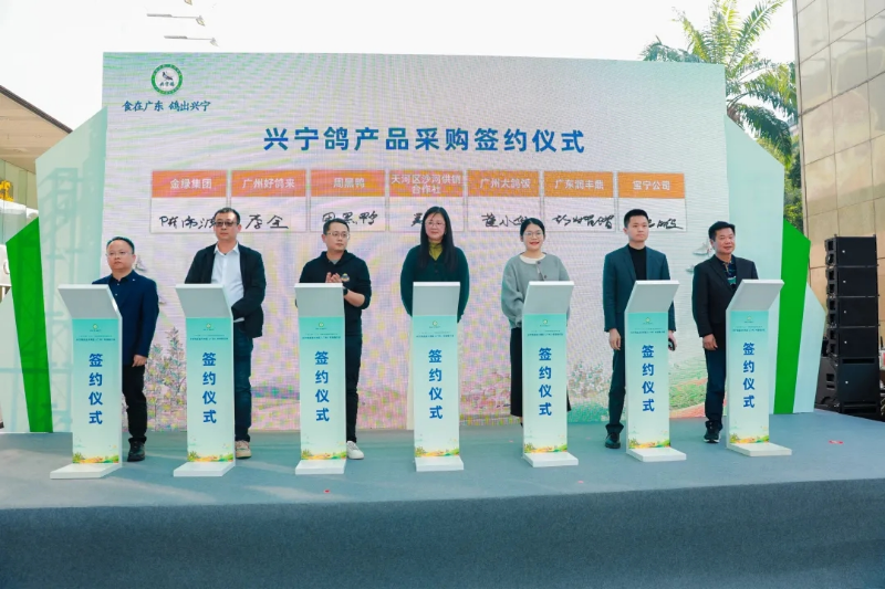 委、市政府对发展“兴宁鸽”产业的决心和魄力,这是兴宁的大事、也是产业的盛事。他希望兴宁在未来“鸽产业”发展中要建设好四个高地,一是人才高地建设,二是市场高地建设,三是“鸽”生产高地建设,四是“鸽”文旅高地建设;同时,要做好制度支撑保障、队伍支撑保障、文化支撑保障、理论支撑保障,把有意义的事情做得有价值,把有价值的事情做得有意义,兴宁鸽产业的发展一定未来可期。 深圳嘉能量餐饮管理有限公司副总经理涂望望说:“对于我们目前嘉能量来说,获取鸽子原材料是一种非常好的方式,也让我们更好的了解了兴宁鸽,因为鸽子对于我们公司来说,是非常好的支柱性产业。无论是养殖还是深加工,质量都是非常好的。今天的推介会对于兴宁鸽的产业发展,意义非常重大,兴宁鸽是天河帮扶兴宁的独特的产业,兴宁鸽最为出名。” 推介会上,还举行了广东农业企业品牌价值50强授牌仪式,梅州市金绿现代农业发展有限公司获授由南方报业传媒集团南方农村报社联合中国广告协会、中央民族大学等单位发起的“广东农业企业品牌价值50强”企业牌匾。兴宁鸽产业企业代表和相关渠道企业签约合作仪式,兴宁鸽区域公用品牌建设战略合作协议签约仪式以及《兴宁鸽产业发展规划(2024-2028年)》发布仪式。 推介会结束后,与会领导嘉宾还参观了兴宁农特产品展销区域,品尝肉鸽美食和了解兴宁丝苗米、兴宁单枞茶、兴宁高山茶油、兴宁沃柑等农特产品。