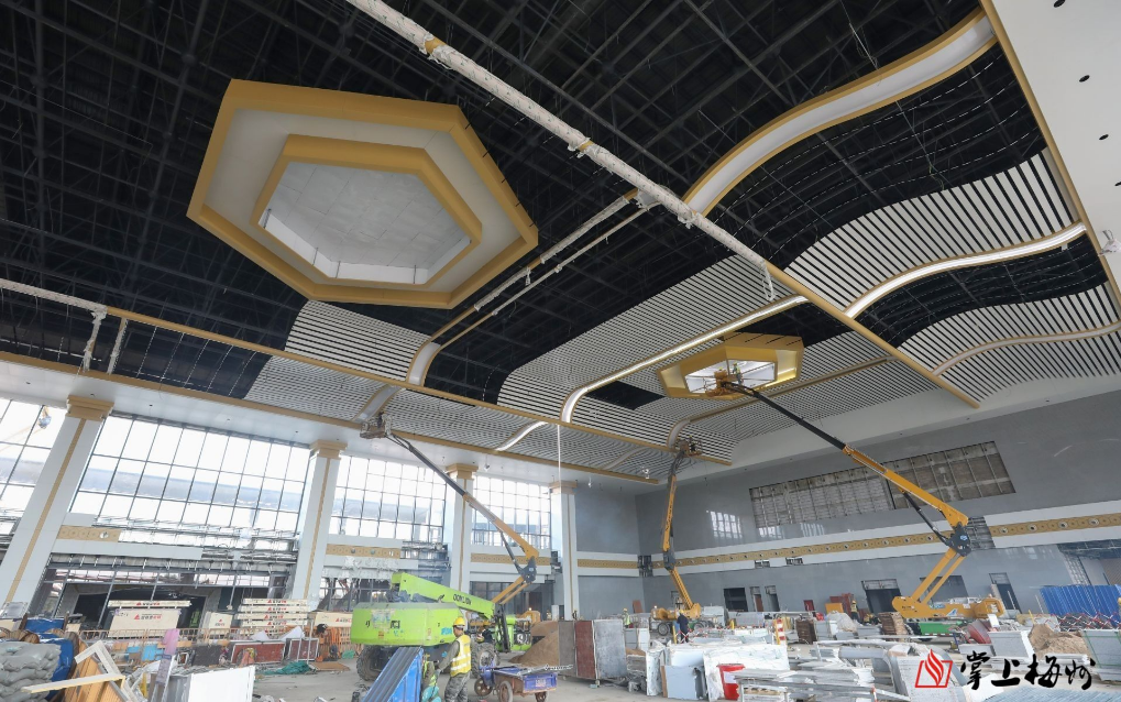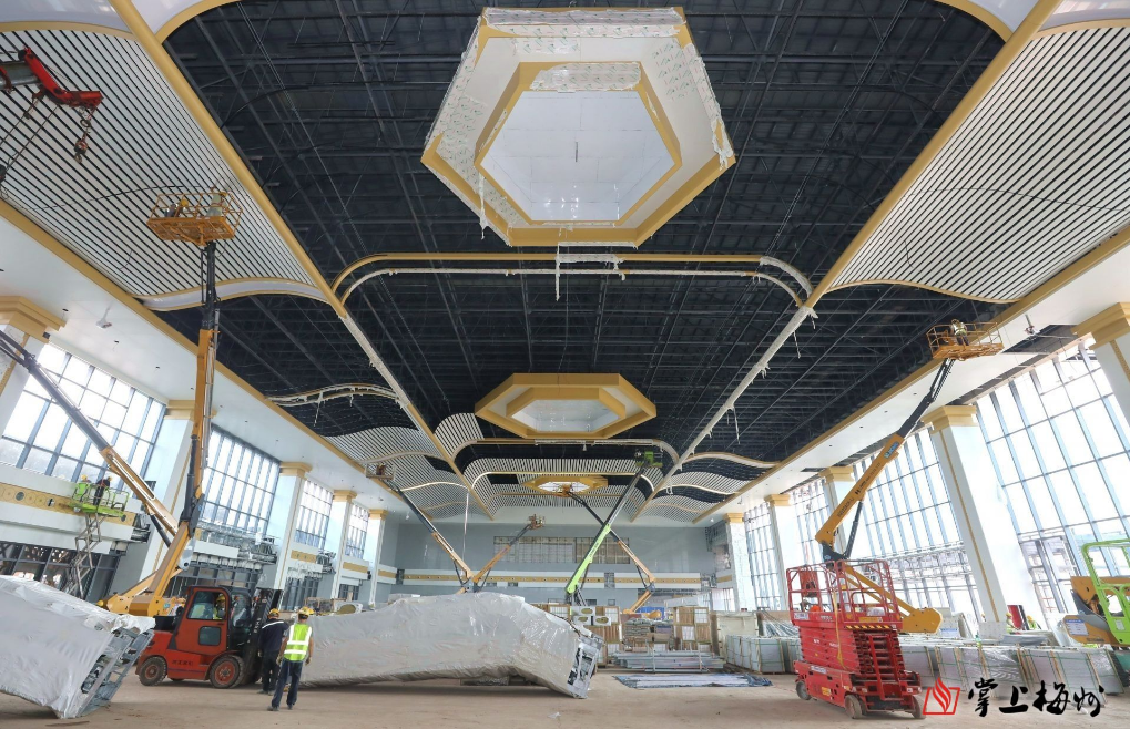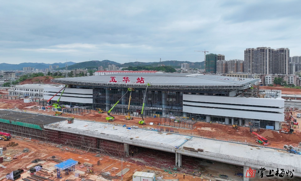 掌上梅州讯 目前,梅龙高铁新设兴宁南站、五华站站房建设进入到快速施工期。两个站房主体结构已完工,预计两座站房将于6月完工。 兴宁南站站房。 记者在兴宁南站、五华站看见,施工现场机器轰鸣声,焊接声、切割声、捶打声此起彼伏,作业车辆繁忙。两个站房主体建筑已经成型,一眼可见设计特色,站台主体已基本建成,站前广场已完成土地平整,五华站已悬挂站名铭牌。站房内部装修正在火热开展。 五华站站房。 记者从建设施工单位获悉,目前,兴宁南站主体结构、钢结构已全部完工,已全面进入装饰装修和机电安装阶段。站台铺装已完成98%,雨棚涂料和水电安装均完成92%;站房装饰已完成65%,水电消防安装完成82%,石材幕墙面板完成89%,玻璃幕墙面层完成65%,站房计划于6月份完工。站前广场部分也正在有序推进,预计6月底完成主体工程。五华站站房主体结构、钢结构金属屋面已完成,装饰装修、机电设备安装分别完成62%、80%,石材幕墙面板完成72%,玻璃幕墙面层完成75%,预计2024年6月份完工。站前广场配套设施已完成40%,正在按照6月底完成的目标全力推进。 兴宁南站站房正在进行内部装修。 五华站站房正在进行内部装修。 “在保证质量和安全的前提下,项目部认真做好施工策划和过程管控,安排充足人员和设备,加快施工进度,全力保证站房及配套设施如期交付使用。”建设单位相关负责人表示,当前,两个站房共有千名现场施工工人。 五华站站台。 据了解,梅龙高铁全长95.6公里,沿线设4个车站,两座既有车站为梅州西站、龙川西站,新设兴宁南站、五华站,预计今年9月达到开通运营条件。目前,路基、桥梁、隧道工程已全部完工,铺轨、四电、站房工程正有序进行。