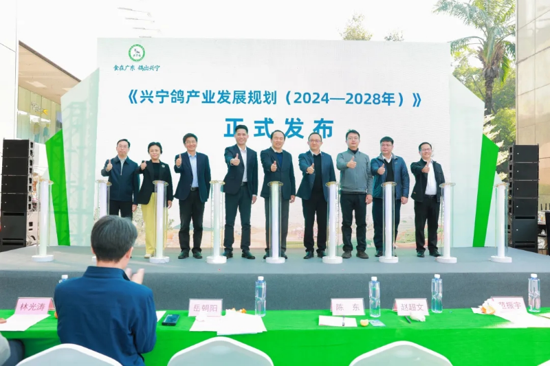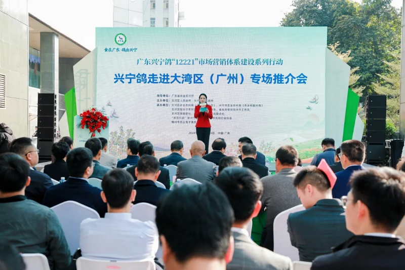 委、市政府对发展“兴宁鸽”产业的决心和魄力,这是兴宁的大事、也是产业的盛事。他希望兴宁在未来“鸽产业”发展中要建设好四个高地,一是人才高地建设,二是市场高地建设,三是“鸽”生产高地建设,四是“鸽”文旅高地建设;同时,要做好制度支撑保障、队伍支撑保障、文化支撑保障、理论支撑保障,把有意义的事情做得有价值,把有价值的事情做得有意义,兴宁鸽产业的发展一定未来可期。 深圳嘉能量餐饮管理有限公司副总经理涂望望说:“对于我们目前嘉能量来说,获取鸽子原材料是一种非常好的方式,也让我们更好的了解了兴宁鸽,因为鸽子对于我们公司来说,是非常好的支柱性产业。无论是养殖还是深加工,质量都是非常好的。今天的推介会对于兴宁鸽的产业发展,意义非常重大,兴宁鸽是天河帮扶兴宁的独特的产业,兴宁鸽最为出名。” 推介会上,还举行了广东农业企业品牌价值50强授牌仪式,梅州市金绿现代农业发展有限公司获授由南方报业传媒集团南方农村报社联合中国广告协会、中央民族大学等单位发起的“广东农业企业品牌价值50强”企业牌匾。兴宁鸽产业企业代表和相关渠道企业签约合作仪式,兴宁鸽区域公用品牌建设战略合作协议签约仪式以及《兴宁鸽产业发展规划(2024-2028年)》发布仪式。 推介会结束后,与会领导嘉宾还参观了兴宁农特产品展销区域,品尝肉鸽美食和了解兴宁丝苗米、兴宁单枞茶、兴宁高山茶油、兴宁沃柑等农特产品。