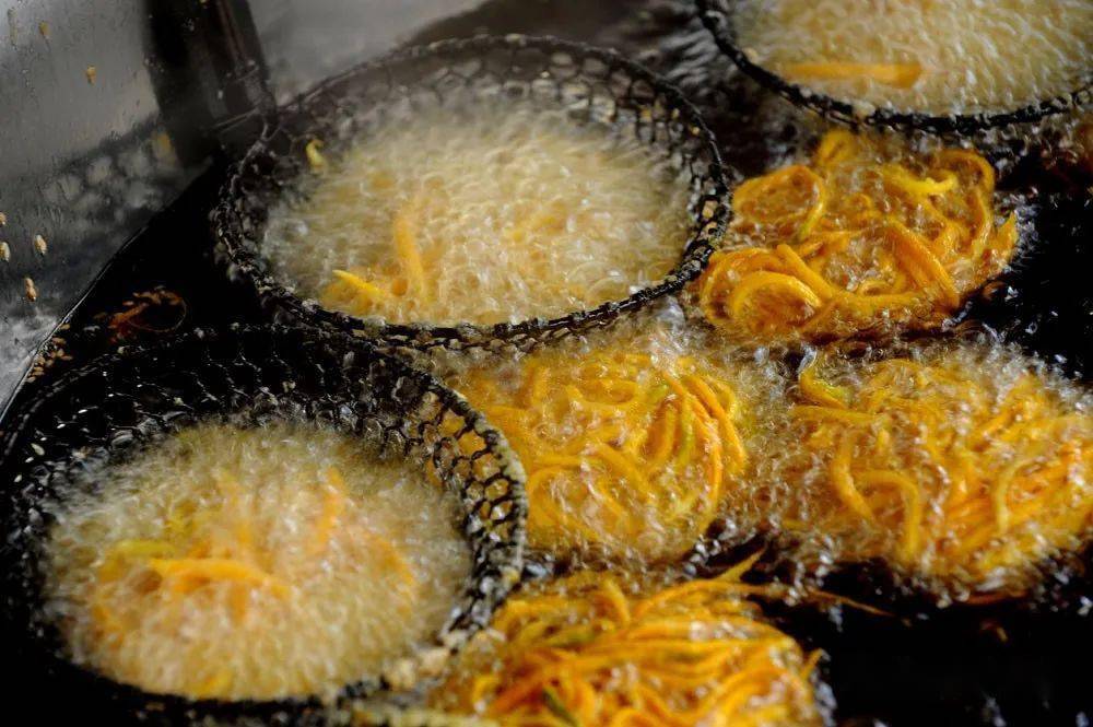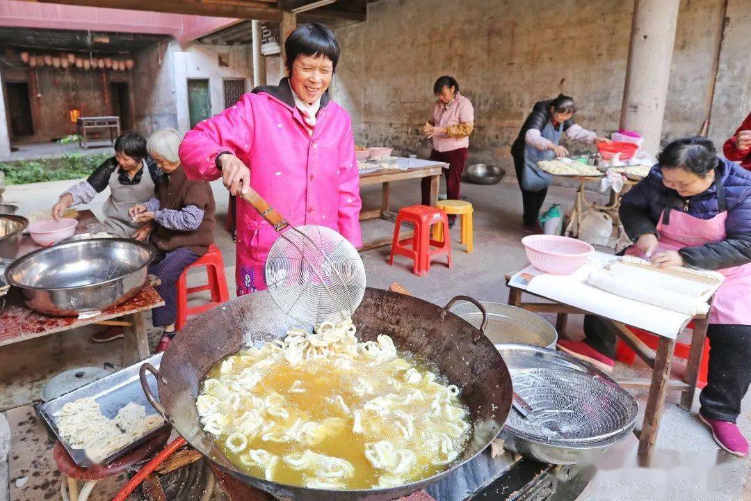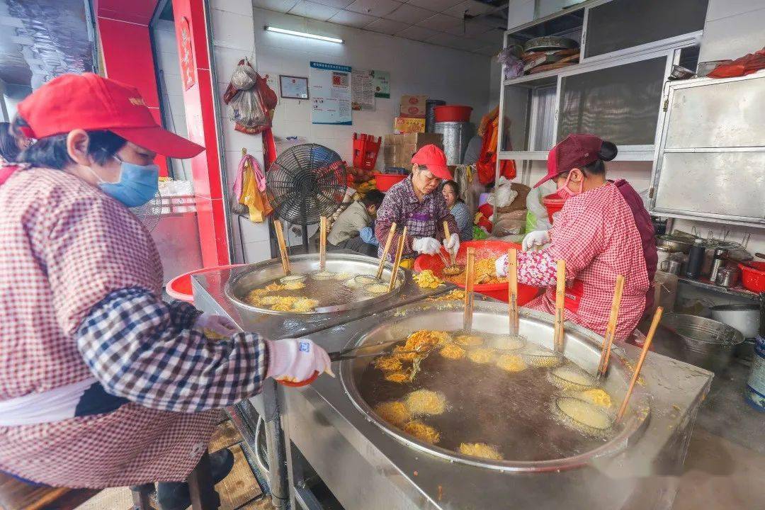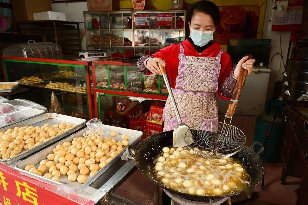 一方水土养一方人 梅州客家人制作油炸小吃 已有数百年历史 按照梅州人的习俗 “见到煎圆才算过年” 色泽金黄的 煎圆 酥脆咸香的 炸馓子 油而不腻的 炸芋圆 …… 寓意着来年的生活 红红火火 甜甜蜜蜜 这就是客家煎炸小食意义 是客家人过年的味道 各式各样的客家传统特色年味小吃。(钟小丰 摄) 煎圆 煎圆,寓意团团圆圆。(钟小丰 摄) 煎圆,也叫煎堆、煎粄 客家人用糯米粉掺黏米加糖 加水搅拌 然后捏成乒乓球大小的丸子 再放到油锅里煎至赤色后即可 热吃香酥 放冷了以后再蒸热了吃 又是另外一种 软糯的口感 钟蕊 摄 传统年味油炸小吃制作忙。(钟小丰 摄) 炸馓子 新鲜出炉的炸馓子。(钟小丰 摄) 刚出锅的馓子金黄酥脆。 用面粉加水揉搓面团 加入适量芝麻、油、鸡蛋、精盐等 将和好的面团碾压成薄面皮 然后切成一张张小块 再切瓣,做成花瓣状 锅里的油烧到八成热 放入做好的馓子 用筷子轻轻地翻动使双面炸透 炸至金黄即可出锅 香脆可口 高讯 摄 炸芋圆 炸芋圆。(钟小丰 摄) 炸芋圆 是用白荷芋刷成丝 加入适量清水、精盐 糖和面粉拌匀 用汤匙舀成丸子状 放油锅里炸,炸至金黄色即成 刚炸好的时候又脆又酥又香 吃上一口,唇齿留香! 新鲜出炉的炸芋圆。(吴腾江 摄) 江北老街油罗街一炸品店内,工作人员正在做炸芋圆。(吴腾江 摄) 钟小丰 摄 油角 将面粉加上鸡蛋、猪油制成角皮 把和好的面团碾成薄片 做成一片片圆型角仔皮 用炒熟的花生米和芝麻 白砂糖等和成馅料 捏紧圆边并扭上花纹 包成半月型角子 再炸成金黄色 香香甜甜一口满足! 牛耳朵 将一层加白糖的面皮 和一层加红糖的面皮相叠 卷实,切片,形成了 耳朵状的圆片 入油锅一炸, 外表好看 口感爽脆,特别诱人
