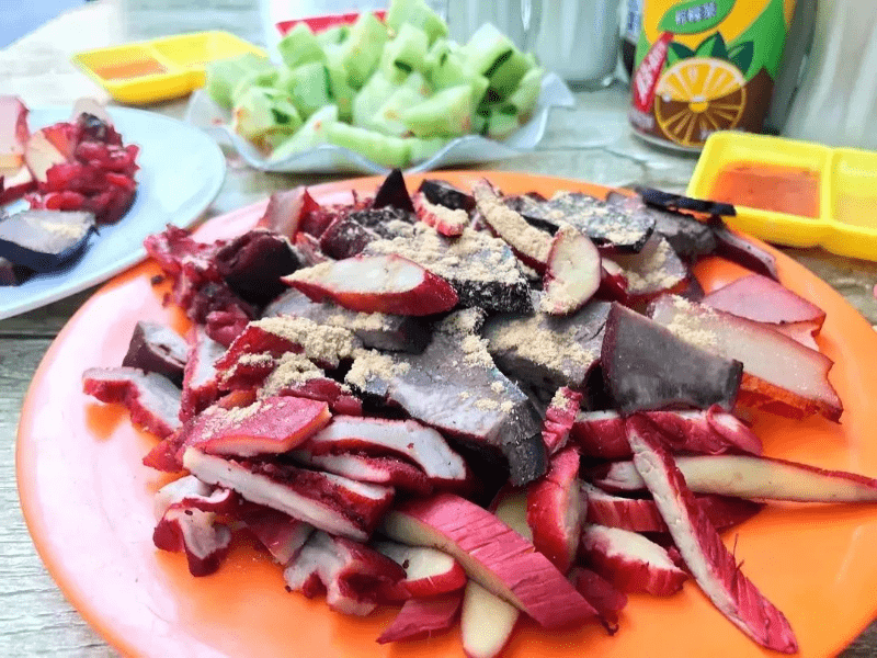 布骆包子豆腐 兴宁大坪布骆包子豆腐是中华千年豆腐制品中的珍品,历史悠久。豆腐的制作十分注重选料,需选择上好的大豆、清甜的山泉水和优质的卤水来制作,做出的豆腐呈方形、白色、嫩滑、鲜甜,烹调方法有酿豆腐、焖豆腐、煎豆腐等,不管是哪种做法都深受大众喜爱。 2017年,兴宁大坪布骆包子豆腐制作技艺被列入广东省省级非物质文化遗产代表性项目保护名录。 (来源:掌上梅州) 兴宁酿粄 酿粄是一道在兴宁地区过年过节的时候必食用的粄,酿粄的形状像大一号的饺子,软糯的面皮中包着满满的馅料,馅料可荤可素,吃起来软糯可口,风味独特。 (来源:兴宁一中校友会) 鸡颈粄 做鸡颈粄一定要把握“七分糯三分粘”,加入适量的水将其和成面团,煎至表面金黄色。煎好的薄片取出后,在表面撒上白糖、碎花生米、芝麻等,轻轻卷成条状,再用刀斜切成一圈圈并竖起,鸡颈粄的制作便大功告成,经过小火慢煎的鸡颈粄外酥里嫩,入口香脆清甜。 (罗仁仁 摄) 04平远县 黄粄 黄粄是平远人逢年过节招待亲友的一种传统风味小吃,做平远黄粄工序繁琐颇有讲究,做成的黄粄色泽金黄,可蒸、可煮、可炒,切片或切条,加入肉丝、香菇、鱿鱼等配菜爆炒,口感爽滑,味道香浓带着淡淡的米香,让人回味无穷。 2009年,平远黄粄传统技艺被列入梅州市市级非物质文化遗产代表性项目保护名录。 (新梅互联 摄) 红菌豆腐头 红菌豆腐头由真菌发酵而成,菌与豆腐的完美结合,富含营养物质。红菌豆腐头的吃法多样,最常见的是做汤,即用猪肉、水咸菜、红菌豆腐头加葱花等配料煮成汤,鲜甜可口,或者将红菌豆腐头切片清蒸,和猪肉一起炒制也是不错的选择,味道甘甜、鲜美。 2009年,平远红菌豆腐头传统技艺被列入梅州市市级非物质文化遗产代表性项目保护名录。 (新梅互联 摄) 土青椒炒牛肉 青椒为平远当地土椒,个小肉薄,口感清甜爽脆,快火炒制,少许盐调味,保持土青椒的清脆和牛肉的鲜嫩,牛肉与土青椒搭配在一起,彼此的味道与口感得到升华。 (新梅互联 摄) 炒三丝 炒三丝,也叫高升菜,以竹笋、肉丝、香菇丝为主要原料,取竹子节节高升之意。荤素搭配,色彩鲜艳,鲜香宜人,口感丰富,这道家常小炒, 开胃又下饭。 (新梅互联 摄) 05蕉岭县 蕉岭三及第 蕉岭三及第汤的主料是猪肝瘦肉粉肠,加了红粬变身红润的三及第,配以鲜嫩的枸杞叶或甜菜,加上一碗米饭或是腌面,沾点美味的辣椒酱,做法简单食材新鲜,口味清淡、爽口,是每天都吃不腻却依然想念的味道。 2015年,蕉岭三及第制作技艺被列入广东省省级非物质文化遗产代表性项目保护名录。 (新梅互联 摄) 三圳酿粄 酿粄特色鲜明,糯米粉作为粄皮主料,馅料有香菇、瘦肉、鱿鱼、胡萝卜等,口味讲究香、嫩、糯、滑,酿粄粄皮口感柔嫩,馅料丰富,蘸一点点当地自制酱料一起吃,清新解腻,还能提升鲜味,就算是挑剔的吃货,也能征服的美味。 2016年,三圳酿粄制作技艺被列入梅州市市级非物质文化遗产代表性项目保护名录。 (来源:蕉岭县文化馆) 广福豆干 广福豆干采用优质品种—农家自种青皮豆来制作,制成的豆干富有弹性,清爽嫩滑,散发着黄豆清香。广福豆干的吃法有很多种,最直接的吃法就是切成块沾酱油芥末,也可以油炸做成油炸豆干,拿来涮火锅也是不错的选择,广福豆干焖蒜苗猪肉很是下饭。不管是哪一种的吃法,都能被这最淳朴最原始的快乐包围着。 2021年,广福豆干制作技艺被列入梅州市县级非物质文化遗产代表性项目保护名录。 (来源:南方+) 06大埔县 百侯牛肉干 百侯牛肉干采用纯手工制作,每一道工序均以手工完成,牛肉干采用新鲜的牛臂肉,肉干香韧耐嚼,食后齿颊留香,回味无穷。 2014年,百侯牛肉干传统技艺被列入梅州市市级非物质文化遗产代表性项目保护名录。 (来源:南方+) 百侯薄饼 百侯薄饼看上去其貌不扬,闻之却浓香扑鼻,大埔当地人结合本地盛产的原料不断完善口味,演变成今天风靡大街小巷的街头小吃。百侯薄饼以瘦肉丝、豆腐干,虾仁等为原料,饼皮韧馅香,口感丰富柔软滑润,味美而不腻,风味独特。 2014年,百侯薄饼传统技艺被列入梅州市市级非物质文化遗产代表性项目保护名录。 (新梅互联 摄) 西河老鼠粄 老鼠粄呈圆柱形、两头尖尖,大米做成呈白色,光滑鲜亮,其形美味佳,赢得了大众的喜爱。老鼠粄做法简单,焯过水的老鼠粄淋上猪油和酱料,撒上胡椒粉和葱花,再加几勺肉酱,一份极简美味就做好啦。 2016年,西河老鼠粄制作技艺被列入梅州市市级非物质文化遗产代表性项目保护名录。 (新梅互联 摄) 大埔笋粄 笋粄形似饺子,粄皮以薯粉为原料,肉馅则以半肥瘦猪肉及竹笋为主,再配上虾米、鱿鱼丝、香菇、胡椒粉、盐等,将肉馅酿入粄皮,咬上一口,唇齿夹杂着鲜笋的清香,粄皮柔韧有嚼劲,馅料丰富,吃完笋粄甚是满足。 2016年,大埔笋粄制作技艺被列入梅州市县级非物质文化遗产代表性项目保护名录。 (新梅互联 摄) 07丰顺县 留隍云片糕 留隍云片糕主要原料为糯米、白糖、芝麻油,原料优质,制作精细,具有品味清醇、易于消化、营养丰富等特点。入口即化、甜上心头,这是初尝留隍云片糕时留下的记忆,留隍云片糕深得丰顺人的喜爱,有步步高升、飞黄腾达之意,在办喜事时少不了留隍云片糕。 2015年,留隍云片糕制作技艺被列入广东省省级非物质文化遗产代表性项目保护名录。 (罗君 摄) 汤坑牛肉丸 汤
