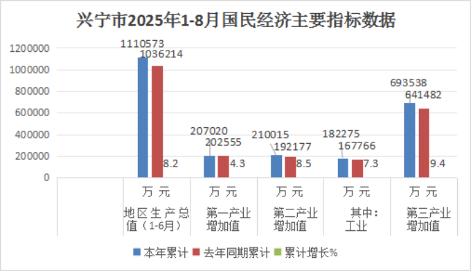 1-8月,我市经济总体运行平稳,各项主要经济指标数据增长有力,规上工业增加值、固定资产投资、社会消费品零售总额、财政收入、贸易进出口总额均取得正增长,具体情况如下: 1.规上工业增势稳定。1-8月,我市规上工业总产值完成77.58亿元,同比增长16.2%;规上工业增加值同比增长13.3%,比1-7月提升1.2个百分点,增速在梅州排位第三。其中:兴宁园区内规上工业增加值同比增长11.8%。 2.固定资产投资保持增长。1-8月,我市固定资产投资同比增长9.8%,比1-7月回落1.1个百分点,增速在梅州排位第二。其中:项目投资同比增长17.9%;工业投资同比增长30%;房地产投资同比下降12.7%。 3.社会消费品零售总额保持增长。1-8月,我市实现社会消费品零售总额47.19亿元,同比增长2.9%,增速比1-7月回落0.1个百分点,在梅州排位第二。 4.财政收入保持较快增长。1-8月,我市累计实现一般公共财政预算收入5.16亿元,同比增长17.7%,增速梅州排位第一;完成一般公共财政预算支出50.36亿元,同比增长0.6%。 5.贸易进出口总额保持增长。1-8月,我市实现贸易进出口总额8.82亿元,同比增长1.0%,增速在梅州排位第四。其中:出口总额8.51亿元,同比下降0.4%;进口总额0.31亿元,同比增长62.5%。实际利用外资4324万元。 6.物价保持稳定。1-8月,全市居民消费价格指数同比下降1.4%。其中,衣着类、生活用品及服务类、其他用品及服务类分别增长0.1%、0.1%、3.9%,教育文化娱乐类、医疗保健类、食品烟酒类、交通通信类、居住类分别下降0.2%、0.2%、1.2%、2.9%、3.2%。