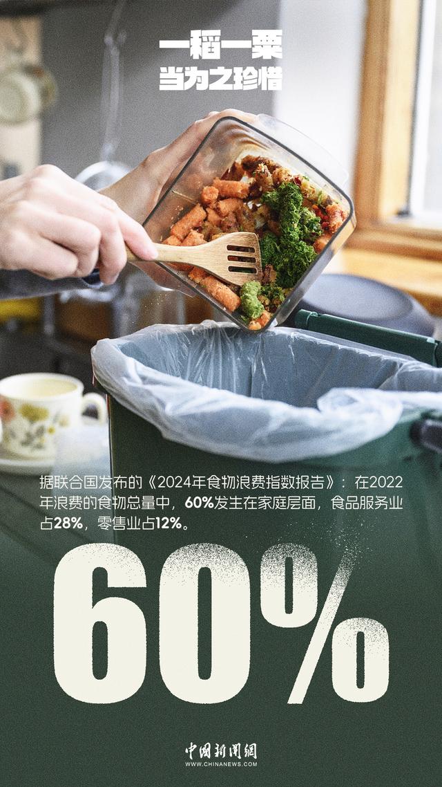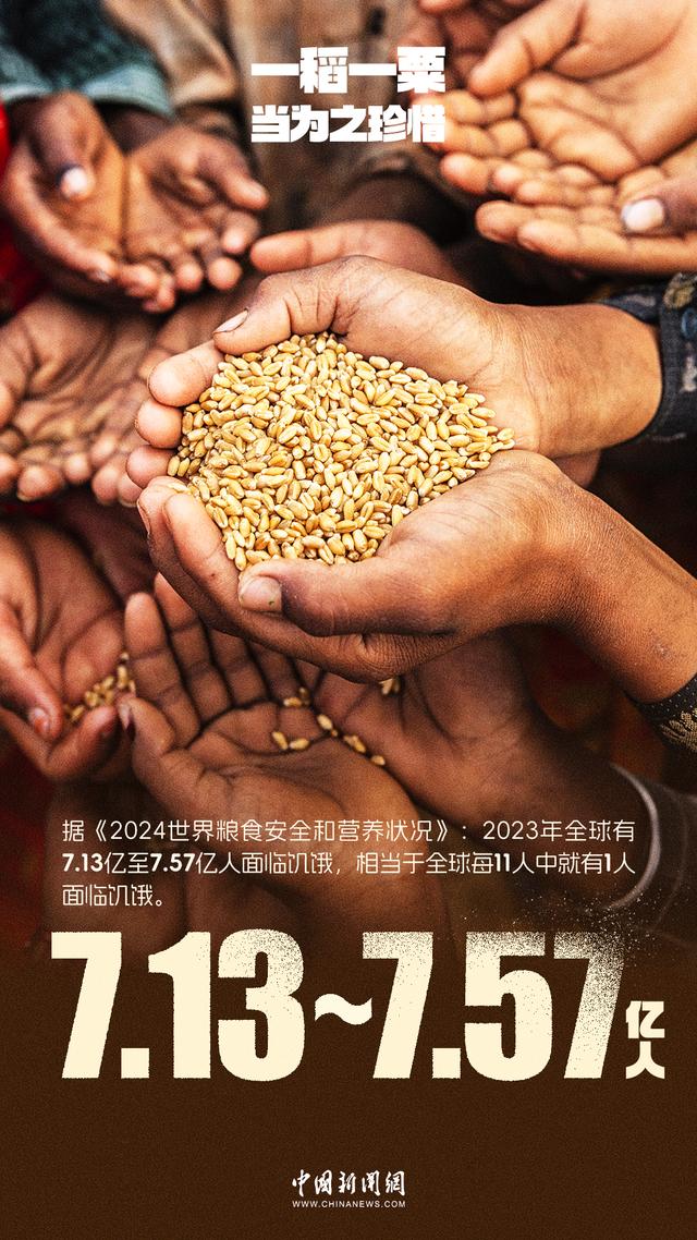 民以食为天,食以粮为先。粮食是生命的基础,节约是对未来的承诺。据《2024世界粮食安全和营养状况》:2023年全球有7.13亿至7.57亿人面临饥饿,相当于全球每11人中就有1人面临饥饿。联合国粮农组织此前估计,全球每年损失和浪费的粮食可养活12.6亿饥饿人口。2024年10月16日是第44个世界粮食日,让我们从珍惜每一粒粮食做起,杜绝浪费,用行动守护每一份来之不易的收获。 参考资料:《2024世界粮食安全和营养状况》、《2024年食物浪费指数报告》、《2023年中国食物与营养发展报告》、新华网