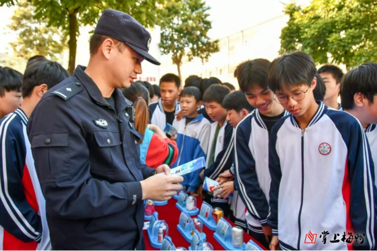 颁奖结束后,现场开展了禁毒、反诈宣传活动,工作人员和党员志愿者分成两组,一组通过派发禁毒宣传资料、普法宣传手册、展示禁毒仿真毒品模型和现场讲解等方式,向现场的师生介绍毒品的种类,重点介绍了为吸引年轻群体伪装成“奶茶”“巧克力”“跳跳糖”等零食饮品的新型毒品及鉴别方法,避免青少年因“无知”去尝试毒品,造成严重后果。并借助真实的青少年吸毒案例,让大家了解吸毒的危害性。另一组则向学生讲解电信网络诈骗的危害以及当前电信诈骗的手法、典型案例,帮助大家识别电信网络诈骗手段,就如何预防电信诈骗给予对策建议,并且讲解了反诈骗“断卡”行动的重要意义,帮助学生认识到出售、出借“两卡”的危害和后果,避免在无意中成了诈骗的“帮凶”。
