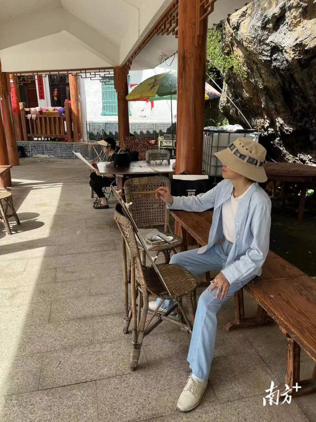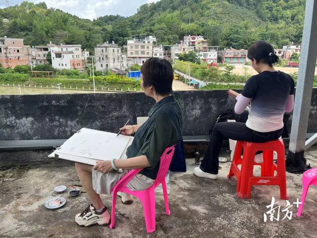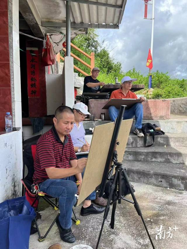 艺术家们一到黄石村云水谣,便被这里的美景所吸引。他们手持画笔,各自选点,捕捉着那些令人心动的瞬间,加上自己对“百千万工程”的理解,用笔墨描绘出黄石村山水秀美、产业兴旺、乡村和美的场景。