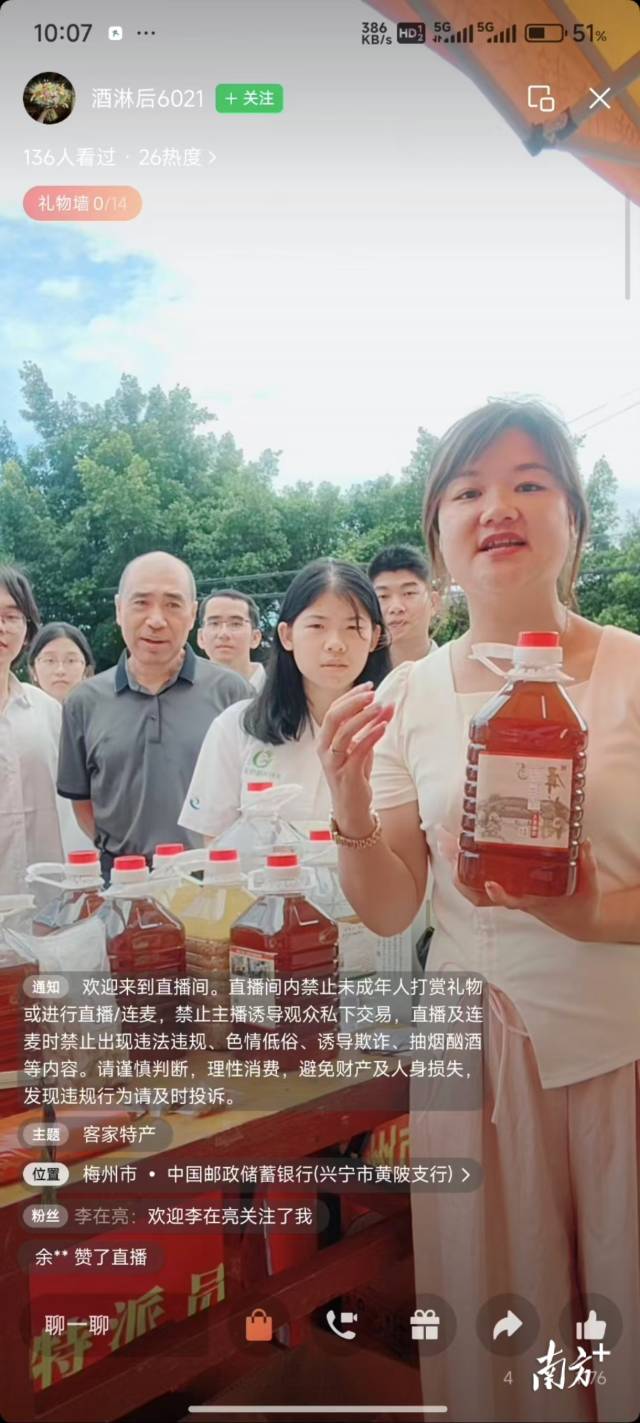 展销现场,广东生态工程职业学院“百千万工程”突击队成员充分发挥专业优势,借助“抖音”平台直播,向线上观众细致讲解鲈鱼、茶油等特色农产品的产品特性、优势功效及食用方法等信息。并通过通俗易懂的讲解、互动,吸引当地群众驻足咨询、选购,有效拓宽农产品销售渠道,进一步提升了黄陂镇特色农产品的市场认知度。