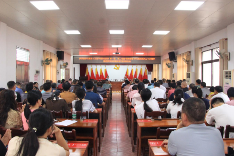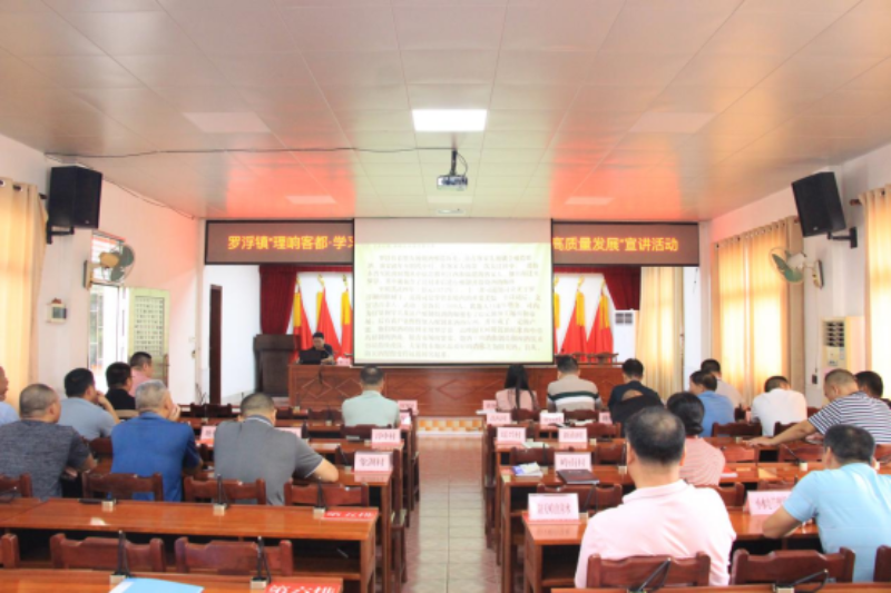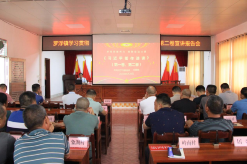 为全面贯彻党的二十大精神,深入学习贯彻《习近平著作选读》第一卷、第二卷的丰富内涵和精神实质,6月26日,罗浮镇举办学习贯彻《习近平著作选读》第一卷、第二卷暨“理响客都·学习贯彻党的二十大精神 推进罗浮高质量发展”宣讲报告会。会议由罗浮镇镇长叶雄飞主持,邀请市委党校办公室主任、讲师刘雄辉作《习近平著作选读》第一卷、第二卷的专题辅导报告,阳天酒厂支部书记刘文、凰嘉农业发展有限公司罗振兴作“理响客都·学习贯彻党的二十大精神 推进罗浮高质量发展”的专题宣讲。全体镇干部、各党组织书记、圩镇单位负责人参加了会议。