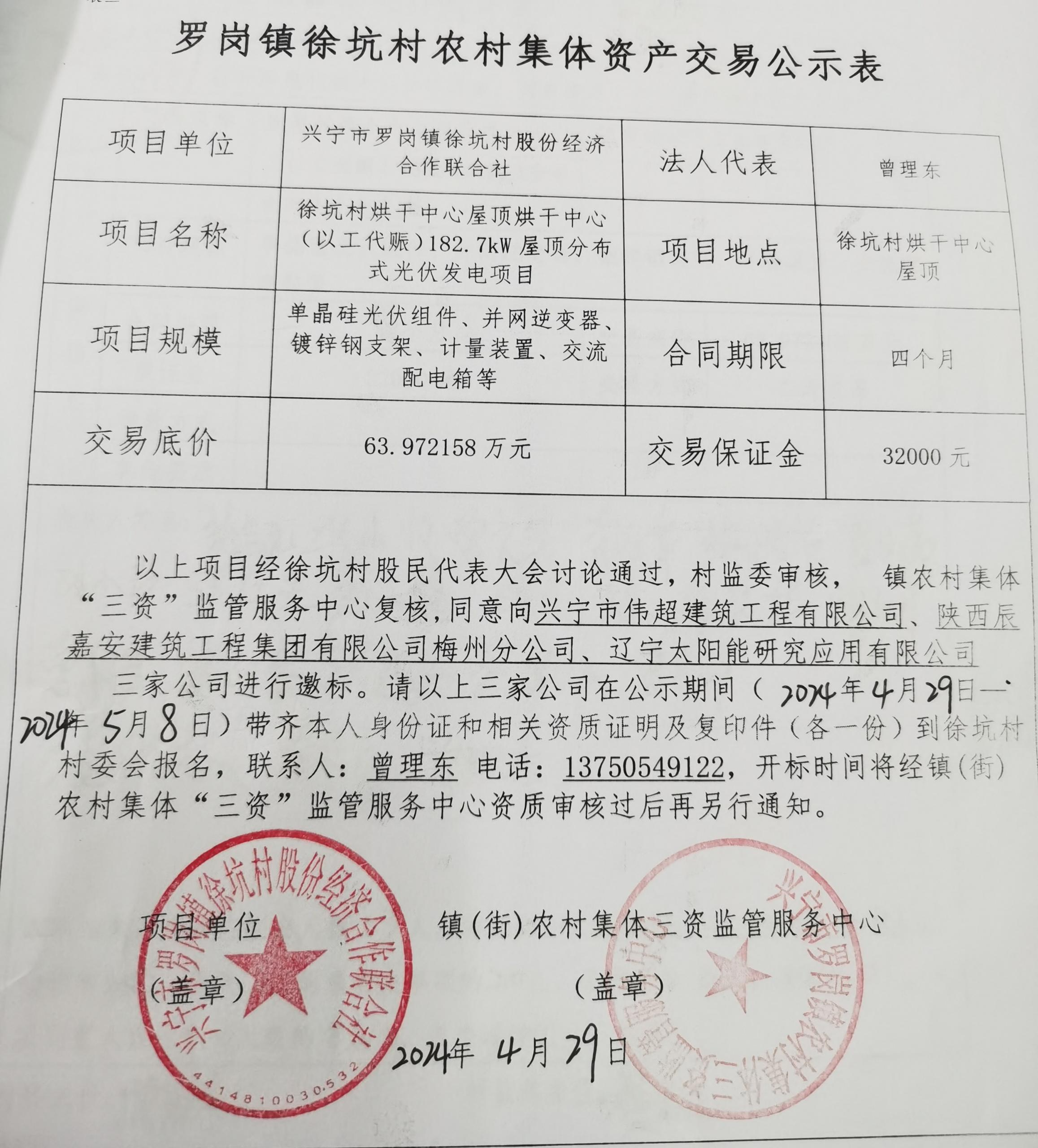 罗岗镇徐坑村农村集体资产交易公示表