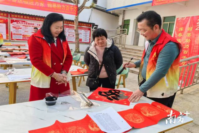 1月17日上午,一场由天河区派驻时光直播 水口镇工作队和兴宁新华书店等单位共同举办的“为群众办实事,挥春送福进万家,翰墨助力‘百千万’”迎春送福活动,在水口镇圩镇客厅举行。