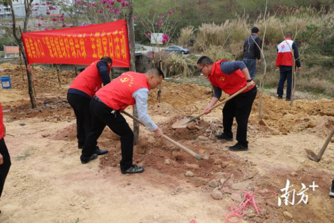 活动现场,在专业技术人员的悉心指导下,党员干部、青年志愿者分工协作,挥锹铲土、扶苗填坑、培实新土、提水浇灌,各个环节衔接有序,现场一派热火朝天的劳动景象,共同为这片土地添上一抹抹生机勃勃的绿意。