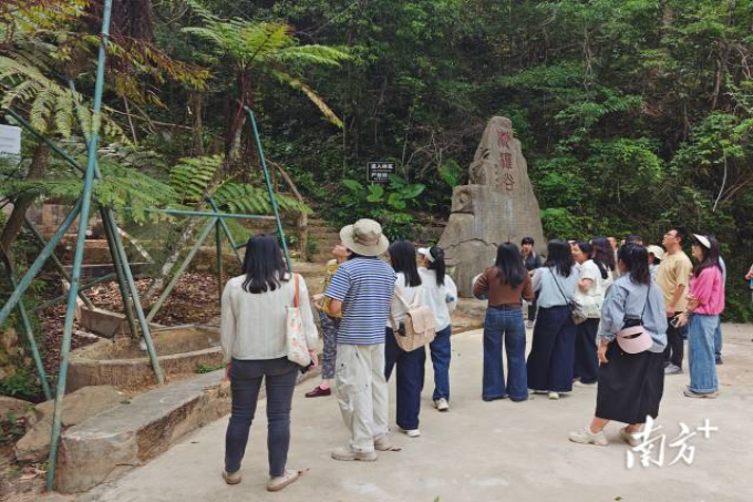 午后,队伍转至长潭水库桫椤岛。碧波荡漾的湖面与葱郁繁茂的山林相映成趣,青年干部们在“桫椤谷”内徒步游览,聆听导游讲解被称为“植物活化石”的国家二级保护植物桫椤,亲身感受绿水青山之美,进一步强化了生态文明建设意识。