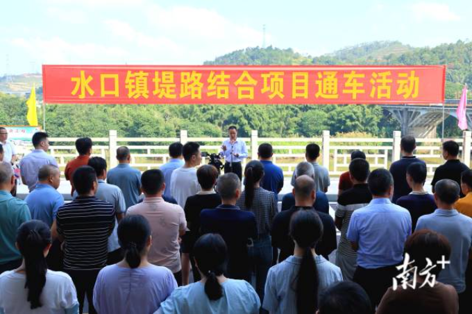 在“堤路结合”通车活动现场热闹非凡,大家洋溢着喜悦的笑容。这条民生之路的建设历程充满艰辛,是历届党委、政府精心谋划、持续攻坚、久久为功的成果。面对征地拆迁难题,镇村干部积极践行“周二上门去”,在走访的过程中了解群众需求,听取群众心声,做通群众思想工作;面对资金筹措、技术难题等挑战,紧抓典型镇建设机遇,积极向省水利厅争取,主动对接中铁四局,将原单一防洪工程调整优化为集交通、防洪、休闲于一体的综合性工程,实现了安全与民生效益的最大化。这项工程的通车,不仅缓解了圩镇交通压力、守护群众生命财产安全,为周边居民提供休闲绿道,同时更为承接产业转移、优化营商环境、促进要素流动打下了坚实基础,有力夯实了“百千万工程”在水口落地见效的硬支撑。