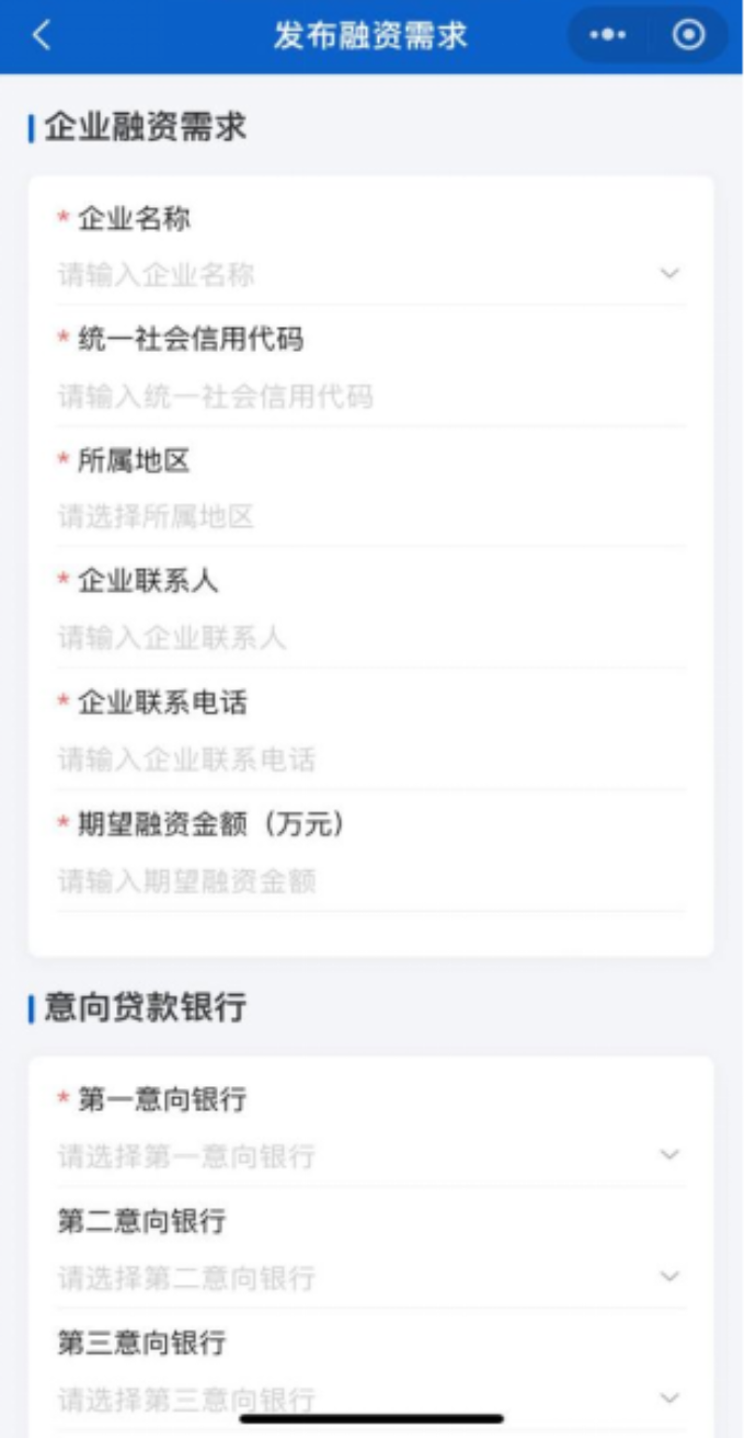 如有融资需求,请填写意向银行和走访时间,星标为必填项。