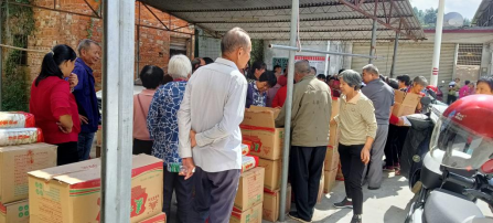 最后,社区工作人员、新时代文明实践志愿者为长者们一一派送慰问品,并祝福长者们重阳节快乐。派送现场其乐融融,简单的一袋面、一瓶油,以及一句句关怀的话语,让长者喜笑颜开,度过一个暖心又欢乐的重阳节。