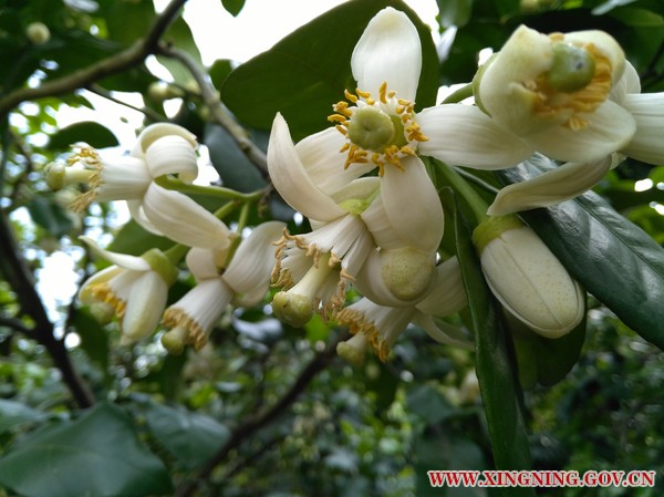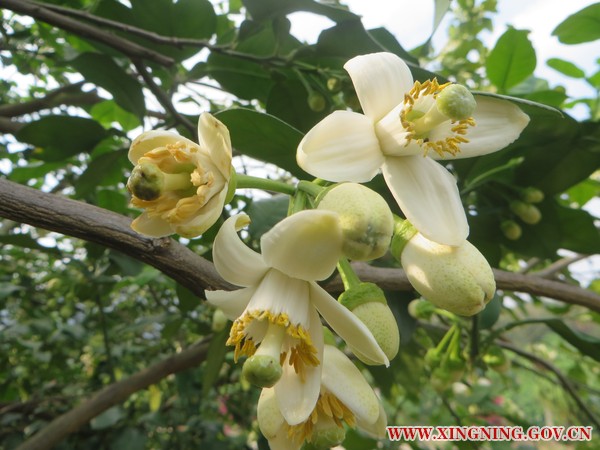 一踏入柚园基地的道路,就能闻到清香扑鼻,只见两边的柚林中,三五成簇的白花散落在柚树嫩绿的枝叶中,或迎春怒放,或含苞待放,恰到好处地展现着柚花“素净淡雅、清新脱俗”的花姿。站在柚林当中,仿佛置身于绿色的海洋,扑面而来的,是阵阵柚花的清香,沁人心脾;映入眼帘的,是淡雅脱俗的柚花,赏心悦目。闻着花香,赏着花色,一切烦忧尽抛脑后。