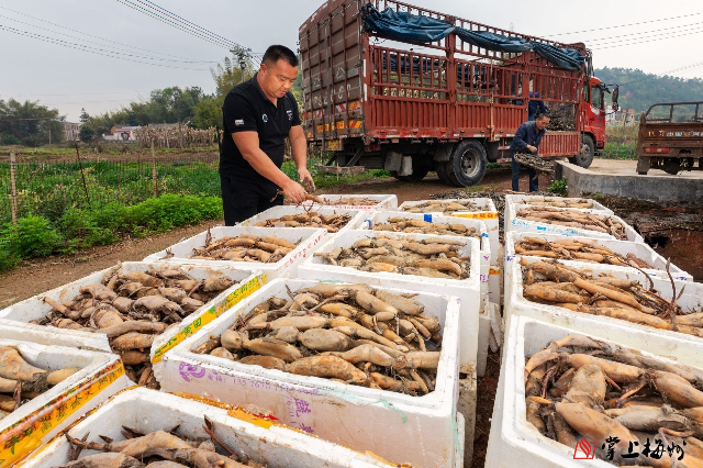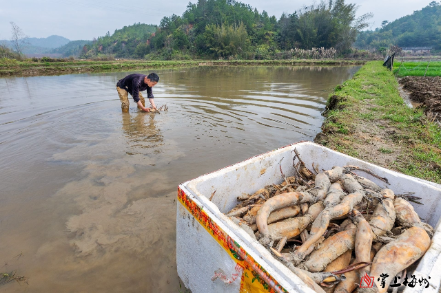 3月11日,记者在新圩镇新丰村看到,一摞摞湘莲种苗被运送到田头,农人们脚踩着长长的防水靴,将一节节藕种插到田中。“这片土地都是湖洋田,两边都是山,种地收益低,此前已经撂荒多年。”新丰村村支书彭忠权道。