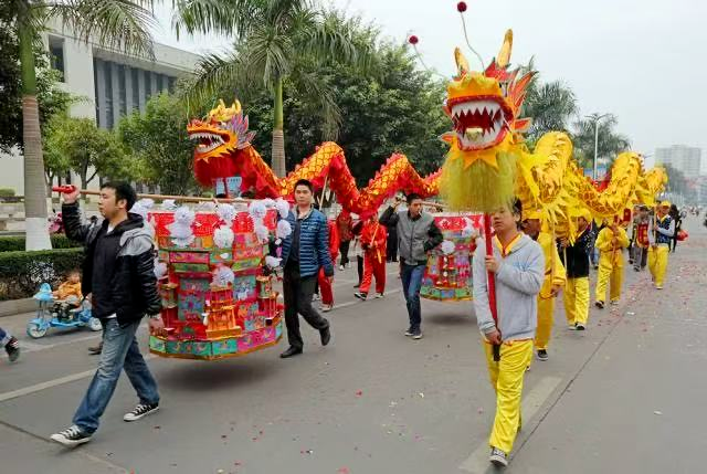 (一)请灯。又称迎灯、接灯。由上一年添新丁的家庭组织队伍,前往圩镇请回花灯,供奉于祖屋上厅。沿途锣鼓喧天、龙狮齐舞、鞭炮不断,途经同族家门皆燃炮迎接,寓意“接丁回家”,象征来年添丁发财、好运连连。