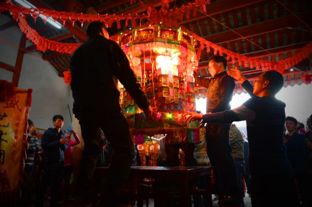 (三)暖灯。一般在各屋上灯活动结束的最后一天下午举行。仪式包括祭祖、回灯、抢灯及各类文娱活动,寄托人们对生活美满、家族兴旺的美好愿景。