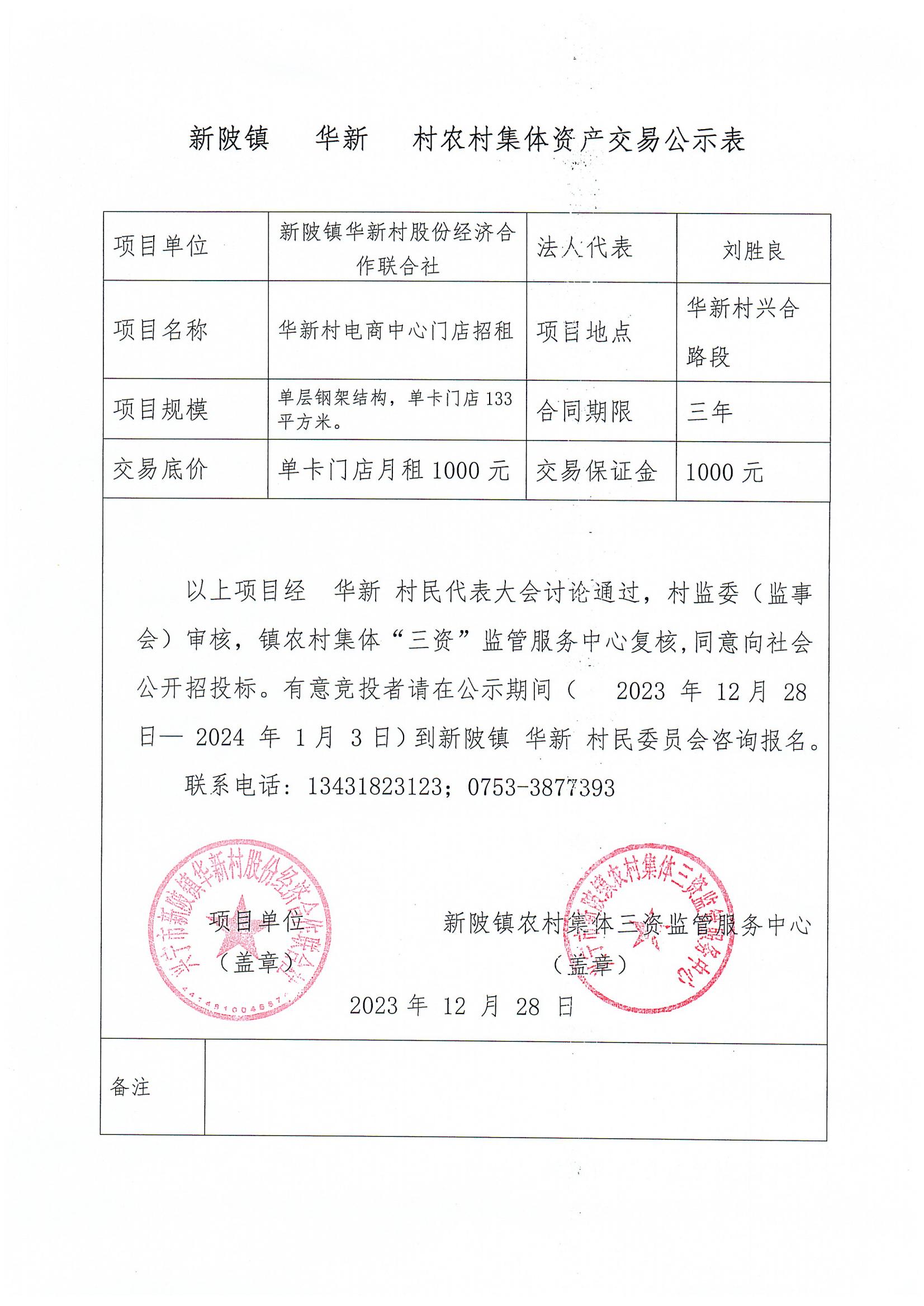 新陂镇华新村农村集体资产交易公示