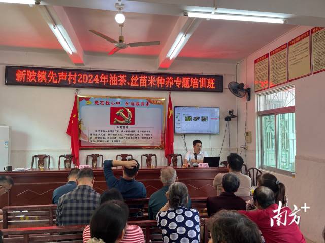 日前,2024年时光直播 新陂镇油茶、丝苗米高产栽培技术培训班在第二批省“百千万工程”典型村培育对象先声村举办。各村水稻种植大户、农业合作社、涉农企业等技术员及先声村村民等共60余人参加培训。新陂镇党委副书记张祖波和驻镇帮镇扶村工作队队长马平平等镇领导参加活动。