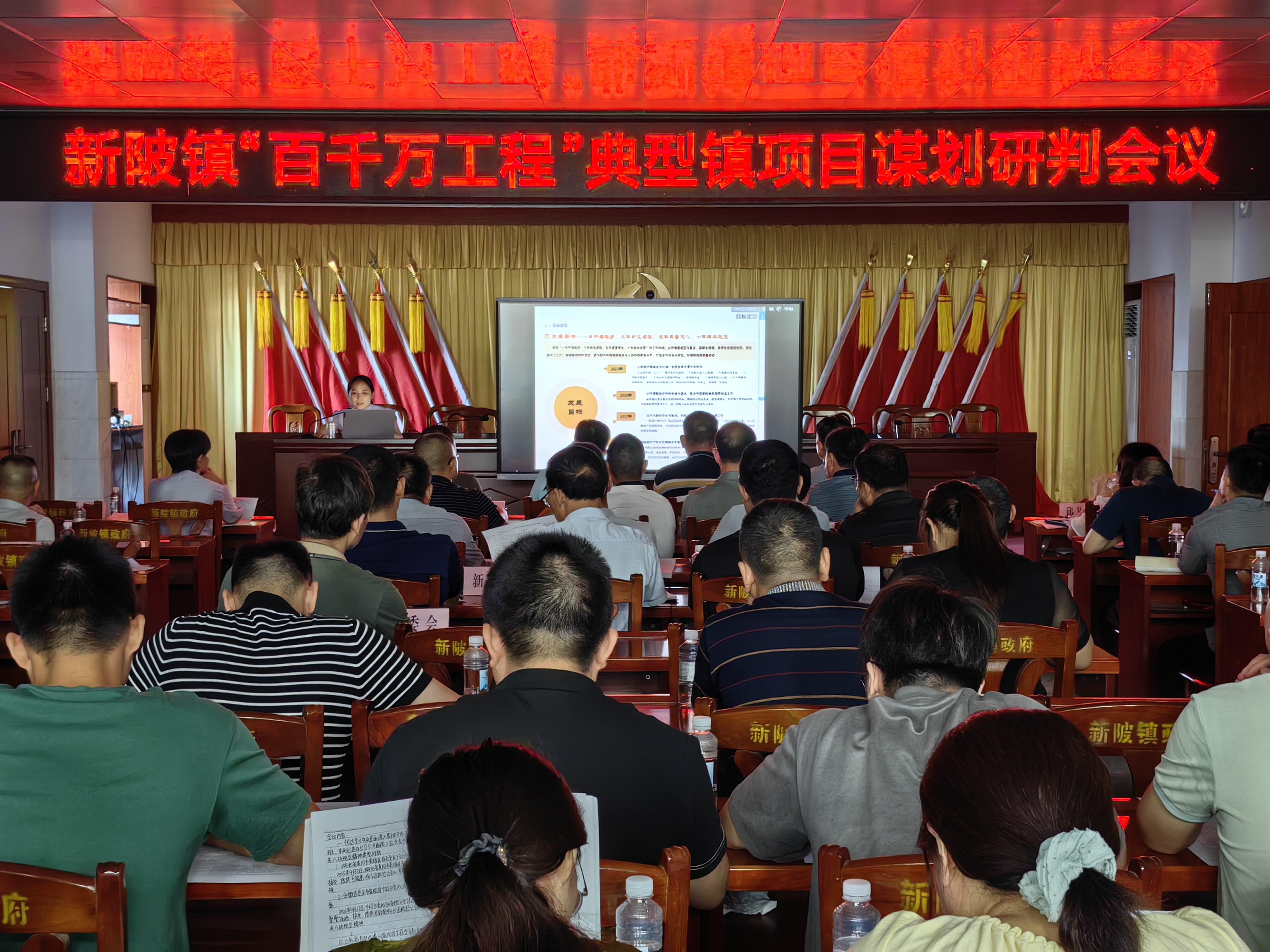近期,新陂镇召开“百千万工程”典型镇建设项目谋划研判会,集众智、汇群力,为打造特色鲜明、宜居宜业的和美新陂凝聚共识、擘画蓝图。镇领导班子、部门负责人、驻村(社区)组长、各村(社区)支书及相关设计单位代表等70余人参与此次会议,对关键节点项目进行深入论证与谋划。