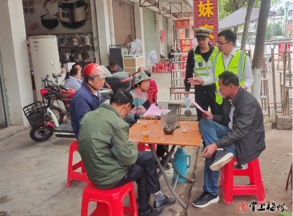 交通安全宣传是事故防控最基础的工作之一,也是预防和减少交通事故最有效的手段。坭陂镇通过丰富宣传载体,利用村广播在重点时间段播放《八类重点交通违法行为》音频;通过走街入户派发倡议书、告知书等纸质宣传材料3600余份;同时在村屋微信群等线上渠道转发交通安全警示视频,在潜移默化中增进群众对道路交通安全法律法规和常识的了解,推动兴起学习宣传交通法规新高潮。