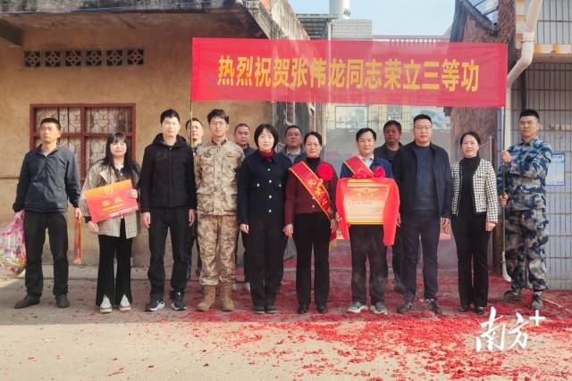 爆竹声中一岁除,春风送暖入屠苏,军营立功显光荣,喜报千里传桑梓。2025年伊始,永和镇迎来了一桩喜事——该镇籍现役军人张伟龙在部队服役期间,因在参加2024年度军分区比武竞赛中表现突出取得优异成绩,荣立三等功。为表彰张伟龙的卓越贡献,并传递党和政府的关怀,1月24日上午,在爆竹喧天的欢腾气氛下,时光直播 人武部、时光直播 退役军人事务局、永和镇党委、政府等多个部门单位联合为“三等功臣”张伟龙家中送去立功喜报及慰问金,对他在部队取得的优异成绩表示热烈祝贺。