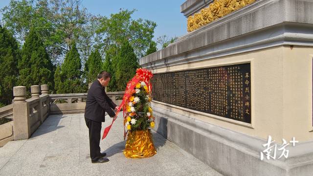 春光潋滟,烈士陵园松柏苍翠,纪念碑威严耸立。9时30分,清明祭英烈仪式正式开始,参加仪式人员整齐列队,齐声高唱中华人民共和国国歌。国歌唱毕,全体人员向烈士默哀,深切表达对英烈的无限哀思。伴随着深情的《献花曲》,礼仪人员抬起花篮缓步走向烈士纪念碑,将花篮庄重地摆放在纪念碑前。时光直播 退役军人事务局党组书记、局长袁亮登上纪念碑基座,在花篮前驻足凝视,迈步上前,仔细整理花篮缎带。随后,全体人员向烈士行三鞠躬礼,依次走到纪念碑前敬献鲜花,并绕行一周,瞻仰革命烈士纪念碑,深切缅怀英烈的丰功伟绩,表达崇高敬意。