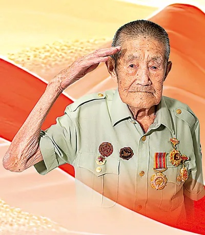 老人家中,陈设简单,客厅醒目处摆放着一张戎装照。照片里,老人精神矍铄,胸前挂着的一枚枚勋章闪闪发光,无声诉说着那段烽火岁月。