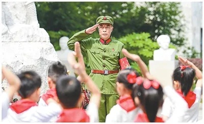 江西赣州市革命烈士纪念馆,抗战老兵与少先队员在一起。胡江涛摄