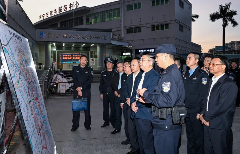 詹星要求,要进一步发挥基层党组织战斗堡垒作用,全力推进“百千万工程”典型村建设和绿美梅州生态建设走深走实、提质增效;要紧盯核心产业,拓宽增收渠道,不断壮大村集体经济,并深挖典型村建设中的特点和优势,进一步激发内生动力和创新活力;要立足各类矛盾纠纷排查化解,强化自治、法治、德治相结合的乡村治理体系建设,深入推进平安乡村建设;要持续加大社会面巡逻防控力度,特别是要根据各重点场所的治安规律特点,科学安排警力,保持社会面巡逻防控力度和密度,并落实落细各项安保维稳措施,确保全市社会面平稳可控;兴宁公安机关要做到旗帜鲜明讲政治,始终站稳政治立场,坚定政治信念,提升政治能力,高水平开展好打防管控服等各项公安工作;同时,进一步强化队伍建设,全面锻造忠诚干净担当的公安铁军,为推动梅州加快振兴、共同富裕保驾护航。
