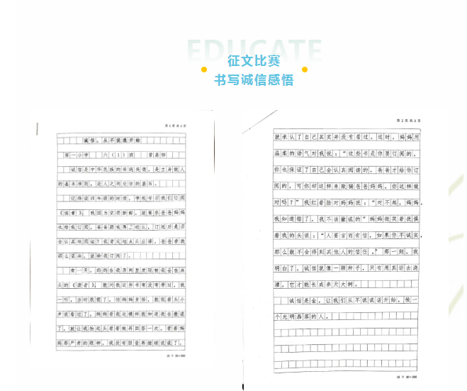 诚信主题征文活动同步开展,鼓励学生用文字抒发对诚信的理解与思考。同学们踊跃参与,用笔记录自己践行诚信的亲身经历,剖析诚信对于个人成长与社会发展的价值。一篇篇真情流露的文章,字里行间满是少年们对诚信美德的向往与追求。
