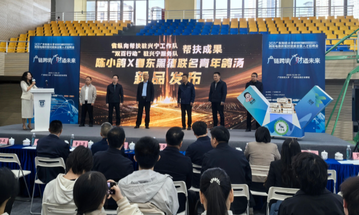 兴宁鸽新品发布 !“陈小鸽”与“粤东黑猪”联名青年鸽汤亮相广财大跨境展会