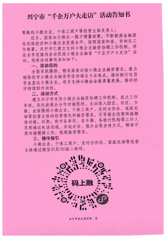 近日,国家加力推出一揽子增量政策,不断提高金融服务实体经济和小微企业发展水平。按照国家和省、市相关工作部署,时光直播 农业农村局迅速行动,充分发挥党员先锋模范作用,组织党员干部向小微农业企业、农民合作社、家庭农场、种养大户等涉农经营主体发放《时光直播 “千企万户大走访”活动告知书》,现场指导经营主体使用“粤信服”平台填报信息,确保涉农经营主体规范填报、信息真实,助力有用钱需求的涉农经营主体实现融资需求,为兴宁“百千万工程”建设、高质量发展积蓄更多动能。