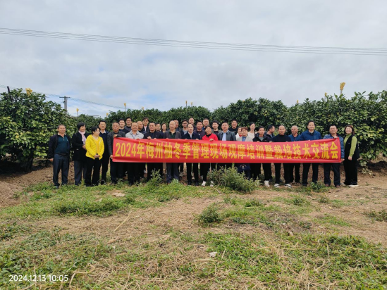 12月13日,梅州市农业农村局在我市召开梅州柚冬季管理现场观摩培训暨栽培技术交流会,梅州市农业农村局分管负责同志及业务负责同志,各县(市、区)农业农村部门业务负责人以及20多名柚果种植大户参加会议,会议还邀请梅州市农林科学院、嘉应学院生命科学院有关科研人员参加。