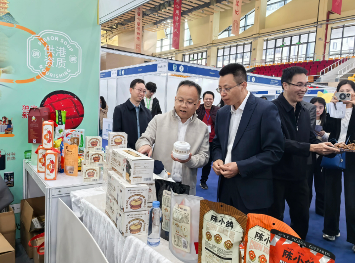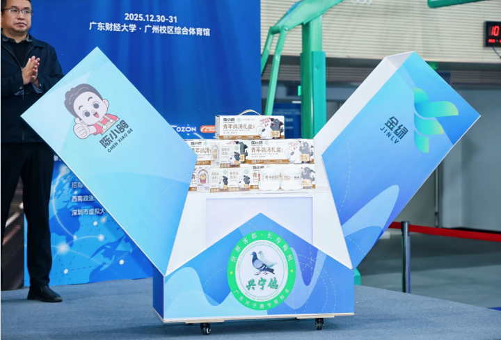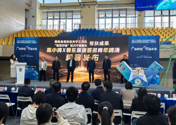 12月30日,在广东财经大学2025跨境电商供需对接展会开幕式上,省纵向帮扶驻兴宁工作队及“双百行动”服务队的重点帮扶成果—“陈小鸽”与“粤东黑猪”联名青年鸽汤正式发布,凭借零添加、轻滋补、速享鲜的核心优势成为展会焦点,为兴宁肉鸽产业跨境发展注入新动能。