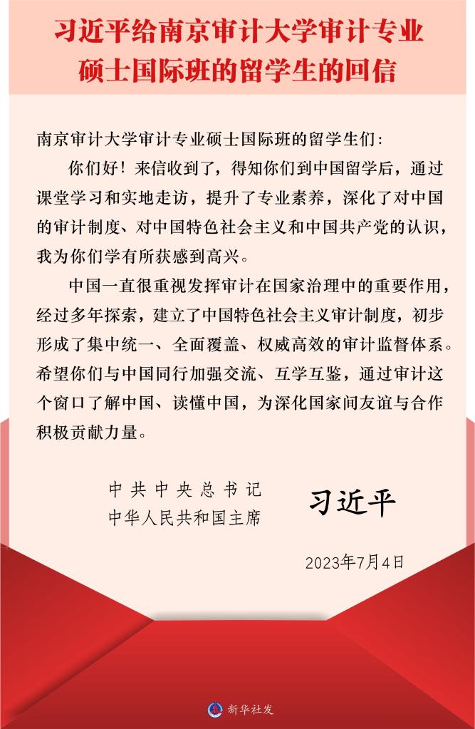 习近平总书记给南京审计大学审计专业硕士国际班的留学生的回信