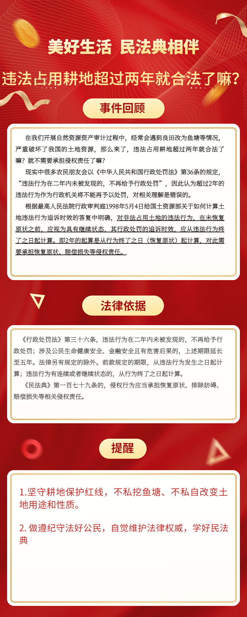 美好生活 民法典相伴 《违法占用耕地超过2年就合法了嘛?》