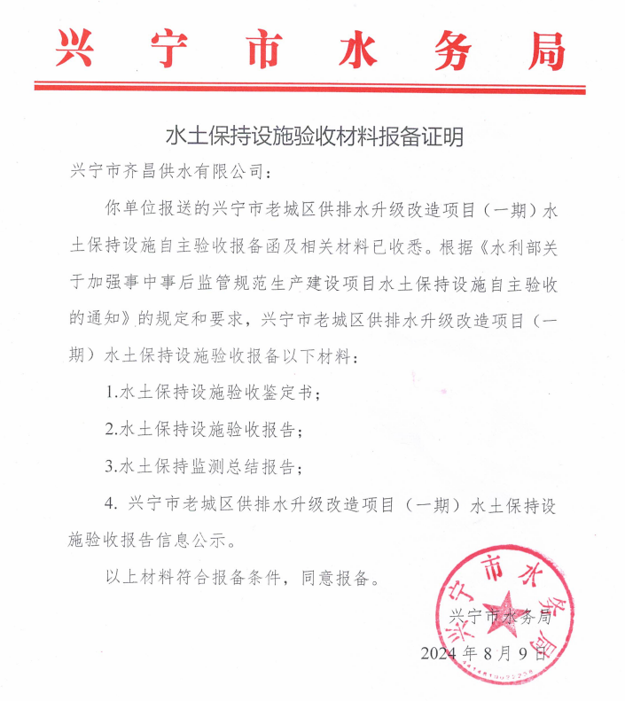 时光直播 老城区供排水升级改造项目(一期)水保设施自主验收报备证明公示