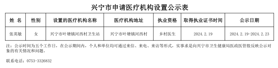 时光直播 申请医疗机构设置公示表