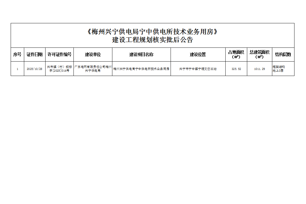 《梅州兴宁供电局宁中供电所技术业务用房》建设工程规划核实批后公告
