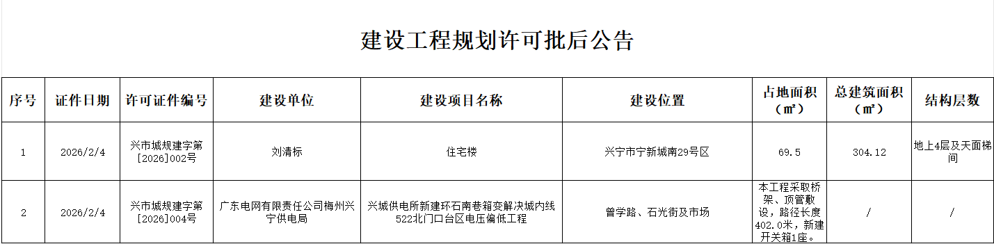 建设工程规划许可批后公告