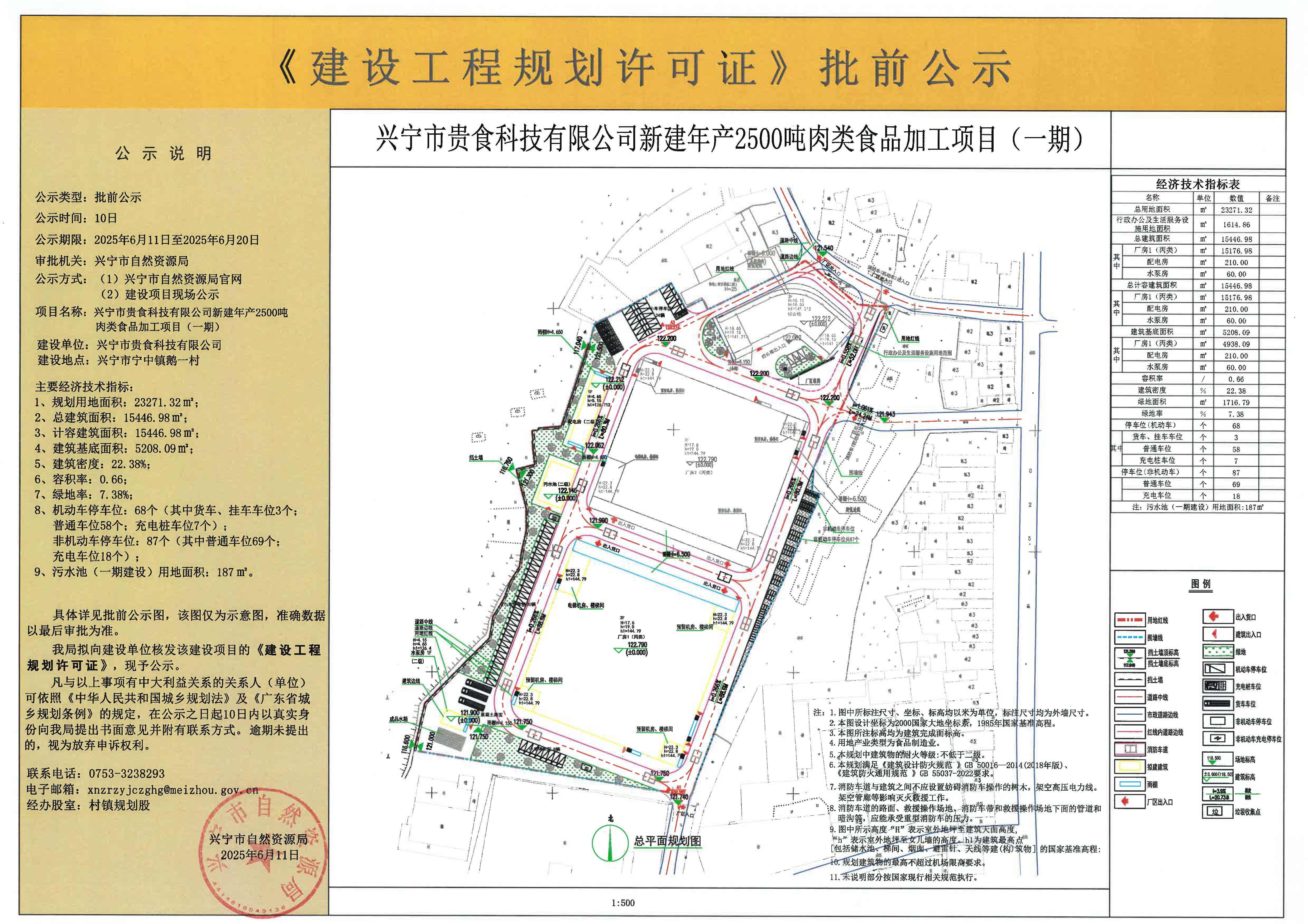 时光直播 贵食科技有限公司新建年产2500吨肉类食品加工项目(一期)《建设工程规划许可证》批前公示