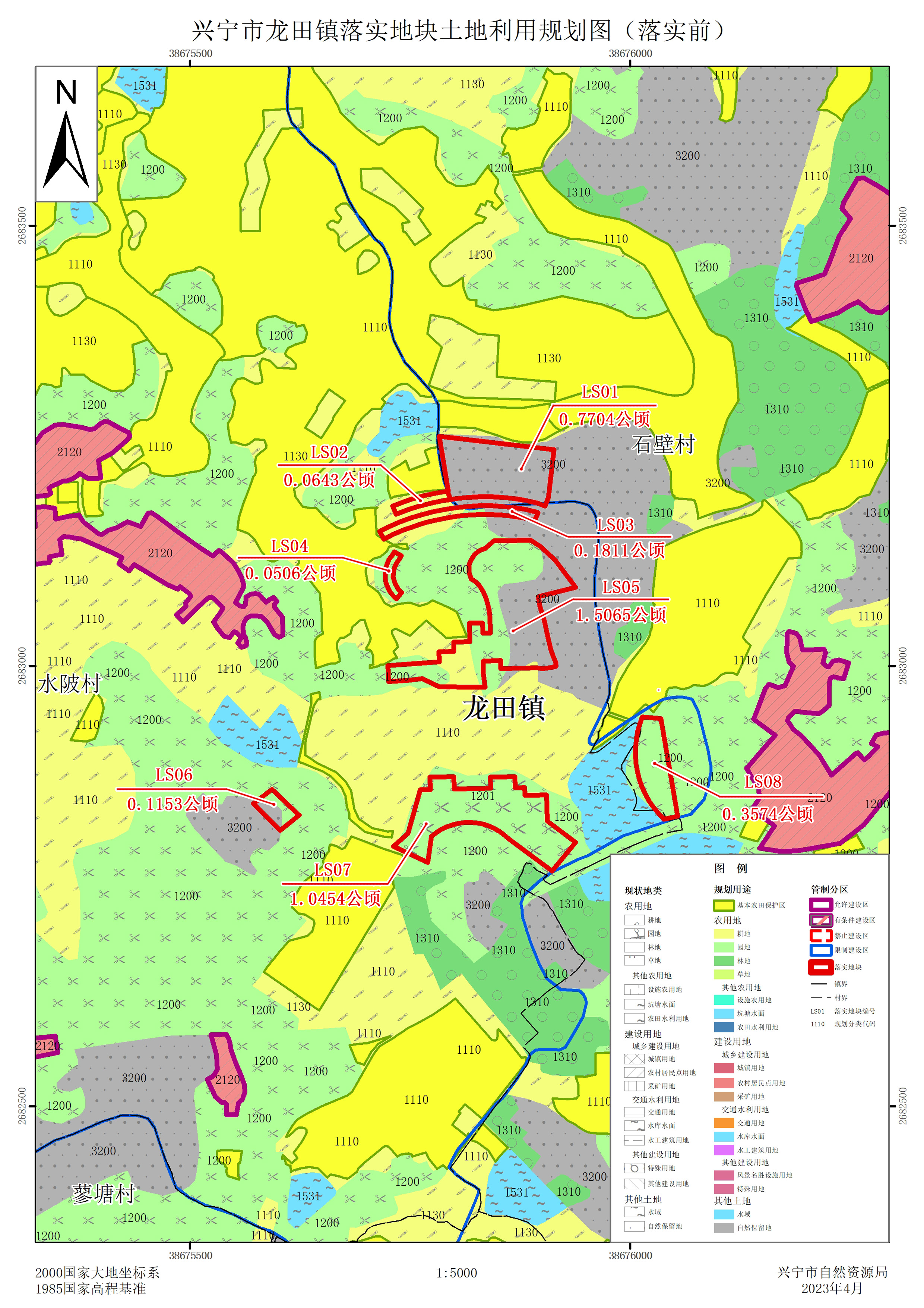 本次拟使用预留建设用地规模4.0910公顷,共8个落实地块,均位于时光直播 龙田镇水陂村、石壁村,落实地块土地利用现状总体情况为:农用地3.0899公顷,其中耕地0.3062公顷,园地2.2941公顷,林地0.4532公顷,其他农用地0.0364公顷;建设用地0.0001公顷,未利用地1.0010公顷。落实地块均不涉及永久基本农田,落实后,本方案拟将落实地块均调整为城乡建设用地(城镇用地),并划入土地用途区的城镇建设用地区,以及土地利用管制分区的允许建设区范围内。