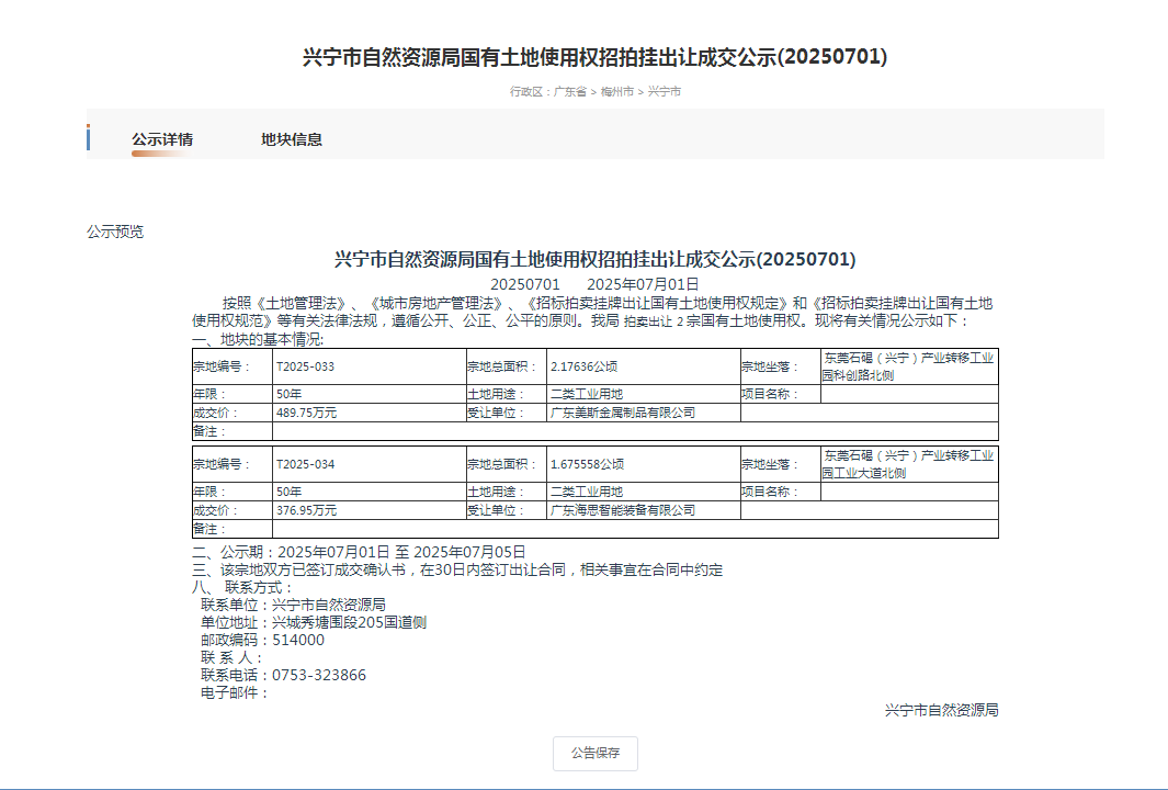时光直播 自然资源局国有土地使用权招拍挂出让成交公示(20250701)