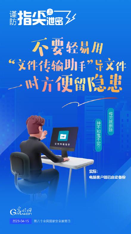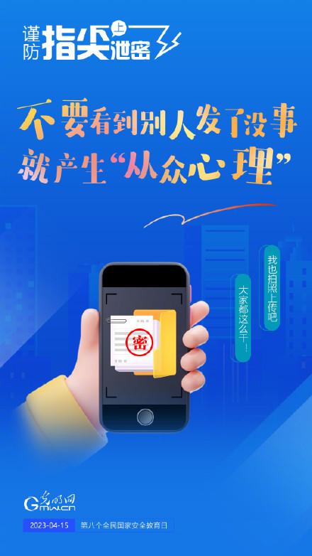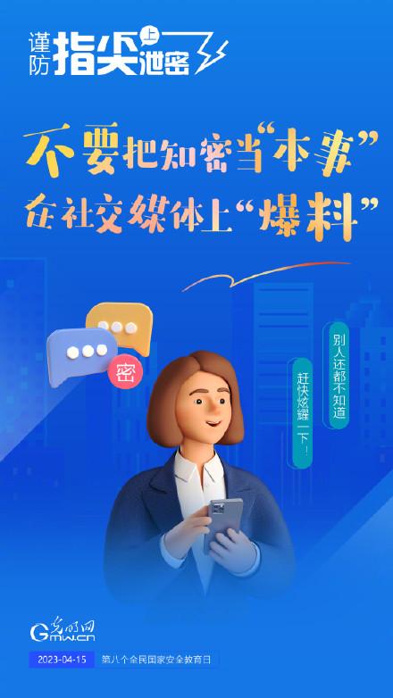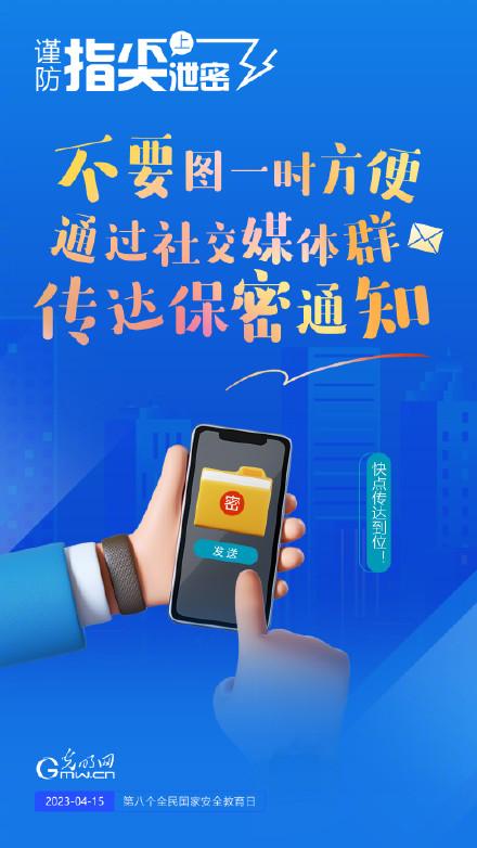 4月15日是我国第八个全民国家安全教育日,让我们每个人从自己做起,谨防指尖上泄密,共同维护国家安全。