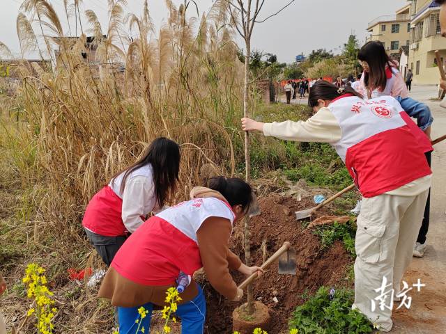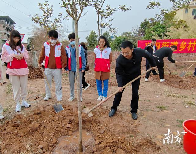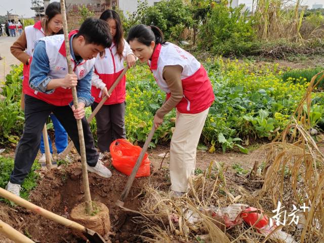 培训会结束后,党员团员三五成组,迅速行动,按照培训会上学到的知识,挥锹铲土、扶正新苗、填平树坑、踩实压紧……大家在一片欢声笑语中分工协作、默契配合,一棵棵桂花树苗在米寨村“安家落户”,营造了“爱绿、植绿、护绿”的浓厚氛围,为绿化村庄、扮靓村道增绿添彩。